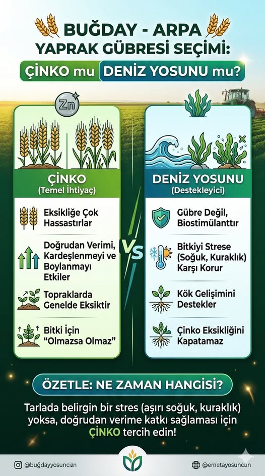 Buğday- Arpa yaprak gübresi olarak ÇİNKO mu Yoksa Deniz Yosunu mu tercih etmeli??